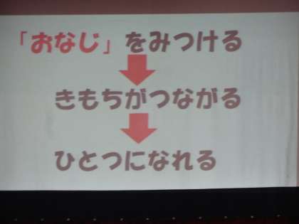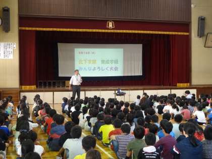 校長先生からのお話では、今月21日に本校で実施する北下支部の育成合同運動会のことも含めて、「ちがいをみとめる」から、「おなじをみつける」ことの大切さについてのお話をしていただきました。