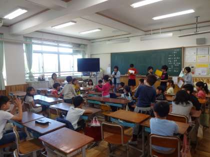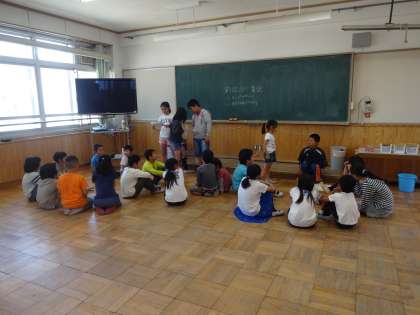 たてわりの各班ごとにあつまり、自己紹介をして簡単なゲームなどを行いました。