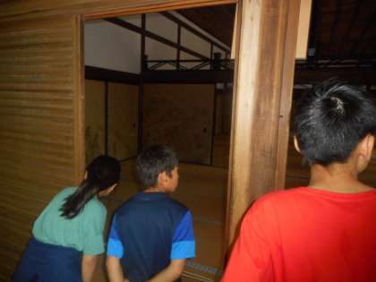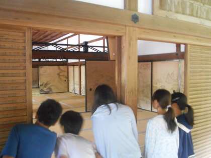 龍安寺石庭の見学と同時に,方丈の水墨画の見学もしました。子どもたちは,墨だけで描かれた龍の絵などの力強さを感じ取っていました。