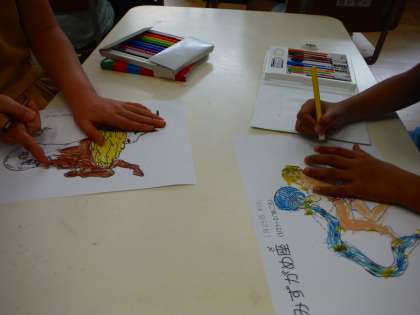 明日は,育成学級科学センター学習です。プラネタリウムでの学習に向けて,自分の誕生日の星座を確かめて,同じ星座の友だちといっしょにお気に入りの色でぬりました。明日の準備は万端です。