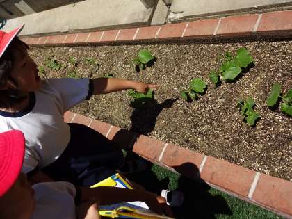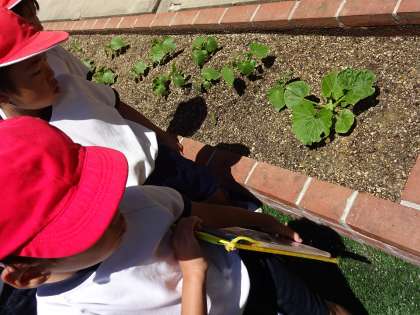 花壇に植えた野菜(きゅうり・とうもろこし・ミニトマト)の様子を体育に行く前に観察しに行きました。大きくなっている様子に,子どもたちはほっとしていました。