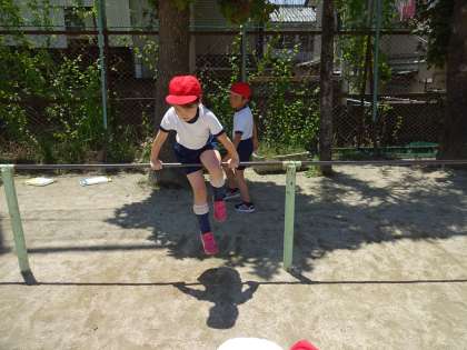 この前は,雨のため中止になった体育の鉄ぼうをひさしぶりにしました。できるようになった技の連続技に挑戦したり,補助具を使って練習したりしていました。どの子も頑張って練習していました。