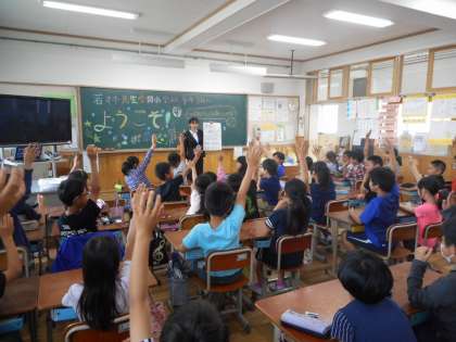 ろ組に実習生が来られています。今日の1時間目はクイズ形式の自己紹介をして下さったり,特技を披露して下さったりしました。子どもたちは興味津々。大喜びでお話を聞いていました。1カ月よろしくお願いします!