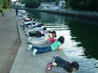 みんな,目を凝らして魚を探しています。