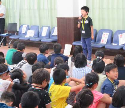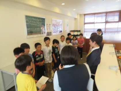 最終社内会議では,今日の収益を確認し,一人一人ふり返りをしました。その後ボランティアの方に今日の頑張りをほめていただき,子どもたちは達成感に包まれていました。そして全体ミーティングで各ブースの代表がふり返りを発表し,区長のあいさつで今日の学習を終えました。後日学校で事後の学習を実施します。今日の頑張りが今後の生活で活かされることを楽しみにしています。