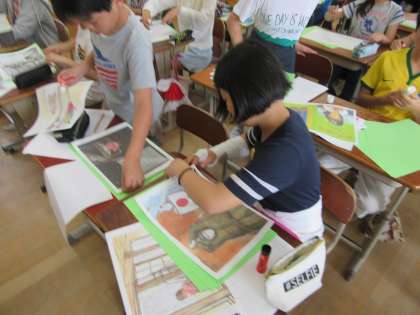 修学旅行に行く前に,全学級に「サダコと千羽鶴」の絵本の読み聞かせに行きます。