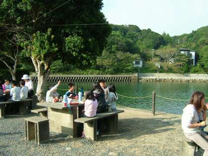 おなかがすいていては,元気に活動できません。みんな朝食もしっかりと食べられました。さわやかな日差しと風を感じながら,深谷水道の横にある野外テーブルで食べました。心地よい空気をいっぱい吸って,深呼吸をしている子もいました。