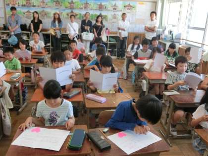 社会科と道徳の学習の様子を見ていただきました。緊張気味の子どもたち(私たちも)でしたが,学習のめあてに向かってがんばっている姿を見ていただけたのではないかと思います。