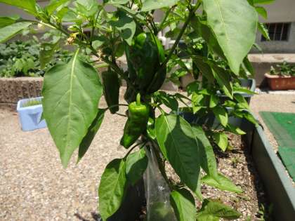 ナスやピーマン、ミニトマトなど、夏野菜が順調に育っています。