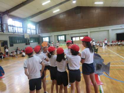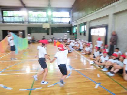 競技は障害物走に参加しました。育成学級児童の手を引き,一緒に障害物を乗り越えゴールを目指しました。また一生懸命応援する姿は,他校の校長先生にほめていただけるほどの立派な様子でした。