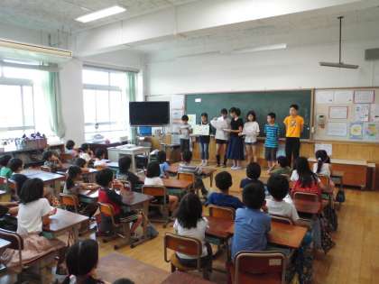 今日は,朝学習の時間に6年生が読み聞かせに来てくれました。「平和」をテーマにした絵本を読んだ後,来週修学旅行に「つる」を持っていくために2年生にも協力をお願いしました。「つる」が折れない2年生は,思い思いの願いを色紙に書きました。