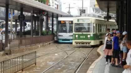 車中で昼食を済ませ,定刻通りに無事広島駅に到着しました。曇り空ですが雨は心配なさそうです。大きい荷物はホテルの方に預けて,今から広電に乗って平和記念公園に向かいます。