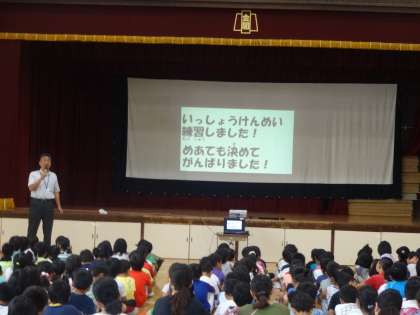 校長先生からは、先日行った大なわ記録会の様子から、友だちを大切にすることについてお話をしていただきました。