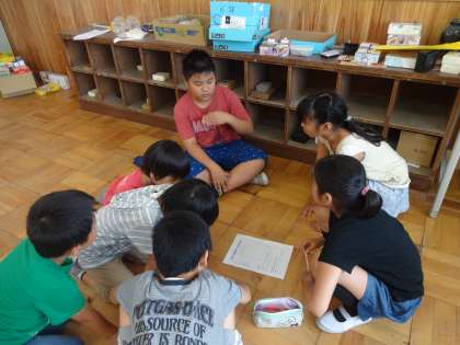 今日は、7日に行う「金閣仲良し探検隊」に向けて、6年生が中心になり、各グループ内の役割分担をしました。
