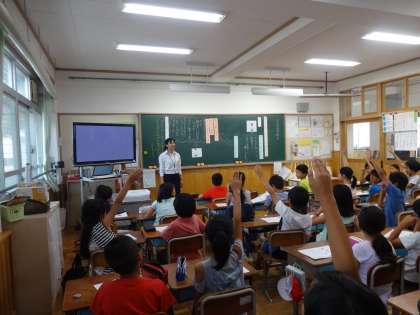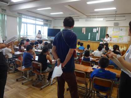 5時間目には、4年ろ組で、若林先生が道徳の研究授業を行いました。
