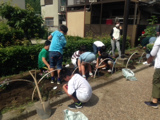 6校時の委員会活動の時間、栽培委員会では、東門付近の花壇の、花の植え替えを行いました。