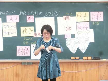 初経や精通のこと,子宮や精子の役割などについて話をしました。「不安に思っていたけれど,詳しく知れたので少し安心しました。」という感想が聞かれました。