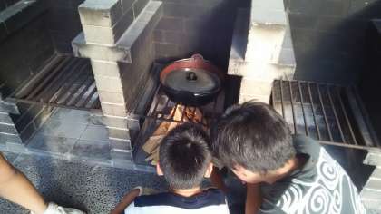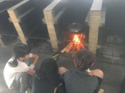 木の置き方も考えて・・・上手く火がつきました。ここからは火の調整が大事です。