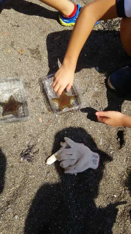 イトマキヒトデの観察をしています。