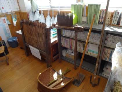 とうみや千歯こき、鍬や鋤など、江戸時代に発達した農具も、実際に間近で見て学習を深めました。