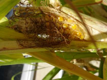 そろそろ収穫ができ,ポップコーンが食べられるかな・・・