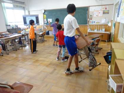 本日より、衣笠中学校の生徒4名が、チャレンジ体験として本校に勤務しています。金曜日までの4日間、様々な場面で児童と関わり、学校の仕事について職場体験をします。