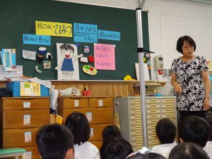 今日は,今年度2回目の身体計測を行いました。計測を行う前に,養護の先生から朝ごはんについての話を聞きました。朝ごはんには,どんな役割があるのかを聞き,どの子も朝ごはんを食べることは大切であることが分かり,しっかりと食べようという気持ちになりました。その後,計測をしました。どの子も4月より少し大きくなっていました。