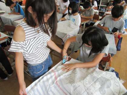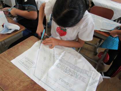 今日は,布を裁って,折り目をつけるところまで進めました。