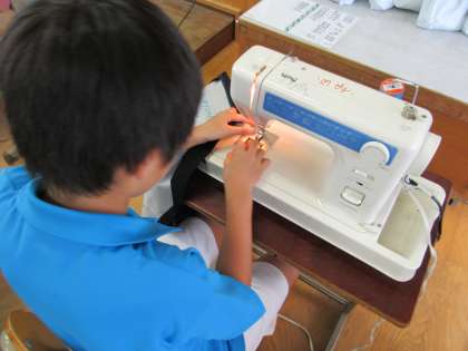久しぶりにミシンを使った子どもたちは,糸を通すのにはじめは苦戦していましたが,慣れだすと,どんどん縫い進めることができました。