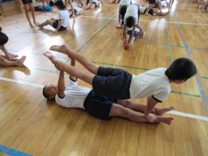 今回は,2人技に挑戦しました。技の難易度が高く,苦戦していましたが,必ず成功させられるように,練習を頑張っていきたいと思います。