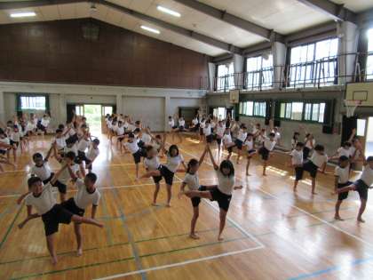 運動会に向けて組体操の練習に取り組んでいます。