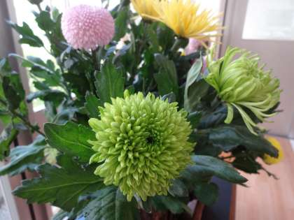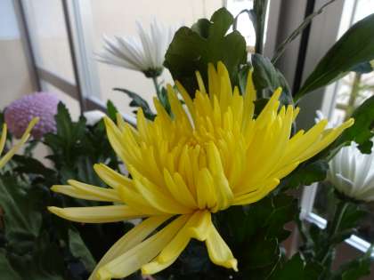 最後の仕上げは明日になりますが、様々な菊の花を使った素晴らしい作品ができてきました。