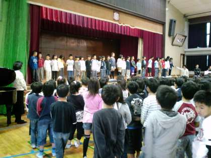 そのあと,全員で「ビリーヴ」の全校合唱をしました。