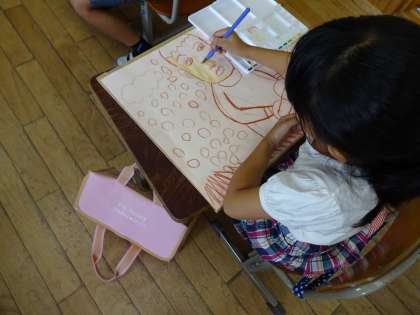 図画工作の時間でお話の絵に取り組んでいます。