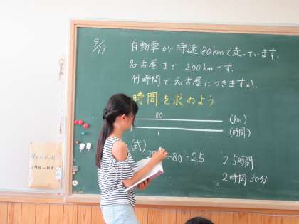道のりと速さが情報として与えられた中で,時間を求める方法を考えました。