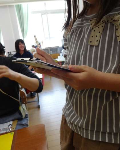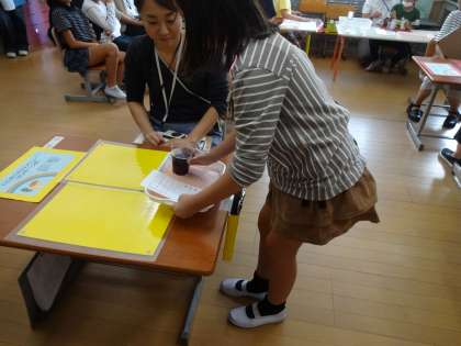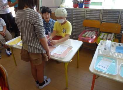 ジュースと、自分たちで作ったクッキーを、教職員をお客さんとして迎えて提供しました。