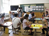 21日に本校教職員がお客になり,にじのこカフェを開きました。子ども達は大好きな先生方が来てくれて大喜びでした。また,自分の仕事を頑張り,力を合わせて楽しく学習する姿もたくさん見られました。今日は,昨日の授業を振り返り,仕事で頑張ったことや良かったことについて一人ずつ発表しました。「友達の仕事の様子を見て,あんな風にするんだ。」とか「お客さんの顔を見てあいさつをした。」等の発表をすることができ,昨日の学習を振り返ることができました。