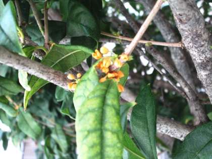 講堂の北側、ひょうたん池の奥にあるカツラの木も、少しずつ色づいてきました。また、運動場の金木犀もかわいい蕾をつけだし、傍を通るとほのかに香りがします。