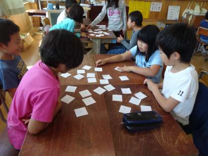国語で「へんとつくり」について、学習しました。学習のまとめとして、「へんとつくり神経衰弱」をしました。みんな楽しみながら「へん」と「つくり」に親しんでいました。
