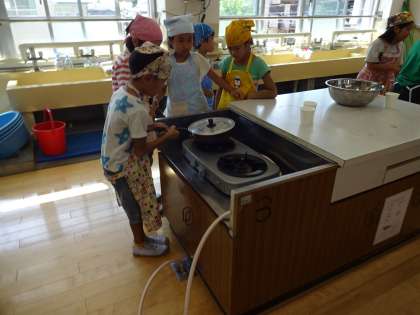 が,収穫したトウモロコシでポップコーン作りをしました。