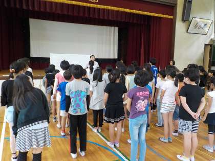 今年から4年生も応援団の一員です。今日は応援団の子たちが発足式に参加しました。6年生と5年生の姿をしっかりと見て,後に続いて頑張ってほしいと思っています。また,応援団ではない人も応援団任せにせず,がんばって応援を盛り上げましょう!