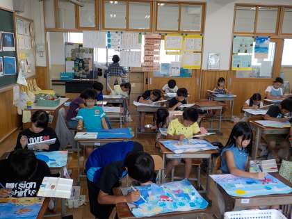 お話の絵もいよいよ大詰めに近づいています。今日は,細かいところにもこだわって,丁寧に色ぬりを進めました。仕上に向けてがんばっている自分の作品を,子どもたちは誇らしげに見せてくれます。