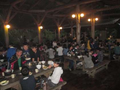 みんなで協力して作ったカレーの味は、最高です!とってもおいしくいただきました。野外炊事、大成功!!