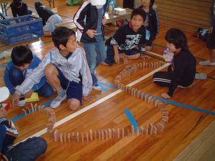 ドミノたおしコーナーです。