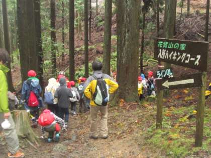 風がどんどん強くなり、とても寒く感じます。花脊峠の寒暖計は、15度でした。途中、ロープを持ちながら降りないといけない、急な坂道もありましたが、けがもなく、全員無事下山することができました。みんなよくがんばりました。