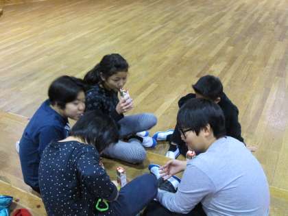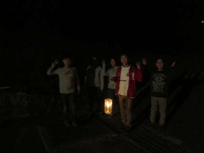 本日最後の活動は,ナイトハイクです。キャンドルの明かりをたよりに,夜の山を散策します。昼間とは違う発見があったようです。帰ってきたグループからリンゴジュースを頂きました。