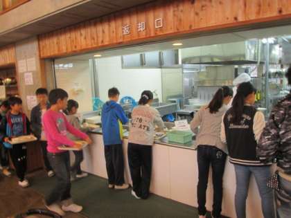 山の家の食堂でいただく、最後の食事です。後片付けをするときに、厨房におられる方に「ありがとうございました。ごちそうさまでした。」と言える人が何人もいて、この5日間での子どもたちの成長を感じます。5日間、おいしい食事を提供してくださった食堂の皆様、ありがとうございました。