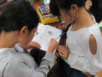 分からなかったところを友達同士でアドバイスをし合いながら,解くことができるように取り組んでいる姿が見られました。