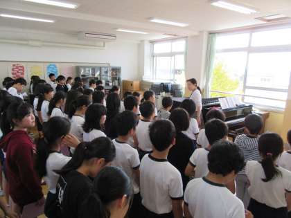 今回は,初めて学年合同で合唱の練習をしました。