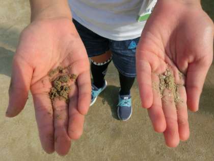 日向と日陰の土を見比べて,違いを見つける人もいました。
